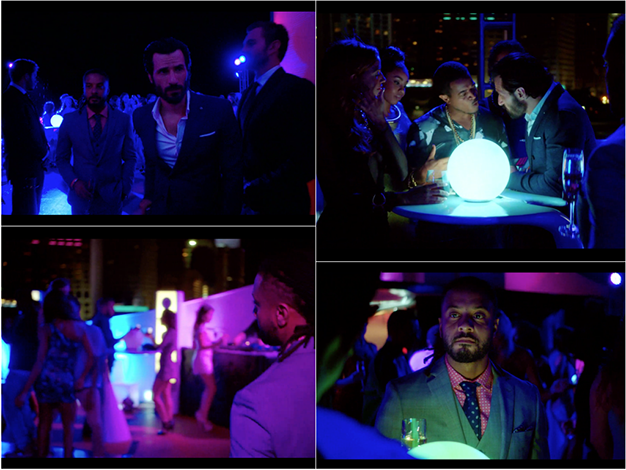 Because of limited electrical capacity on this mega yacht, we were able to light this scene almost entirely with the lighting provided by the Art Department. This was planned in cooperation with the DP and the Electrical Department.