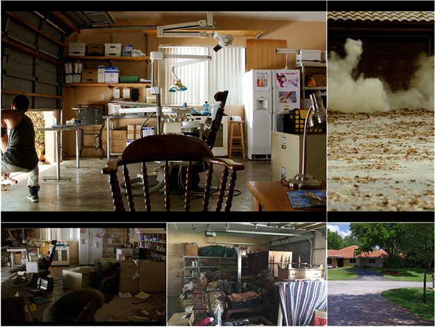 The image in the middle bottom is the before image of this particular garage. The script called for a dental home office for an illegal dental operation.